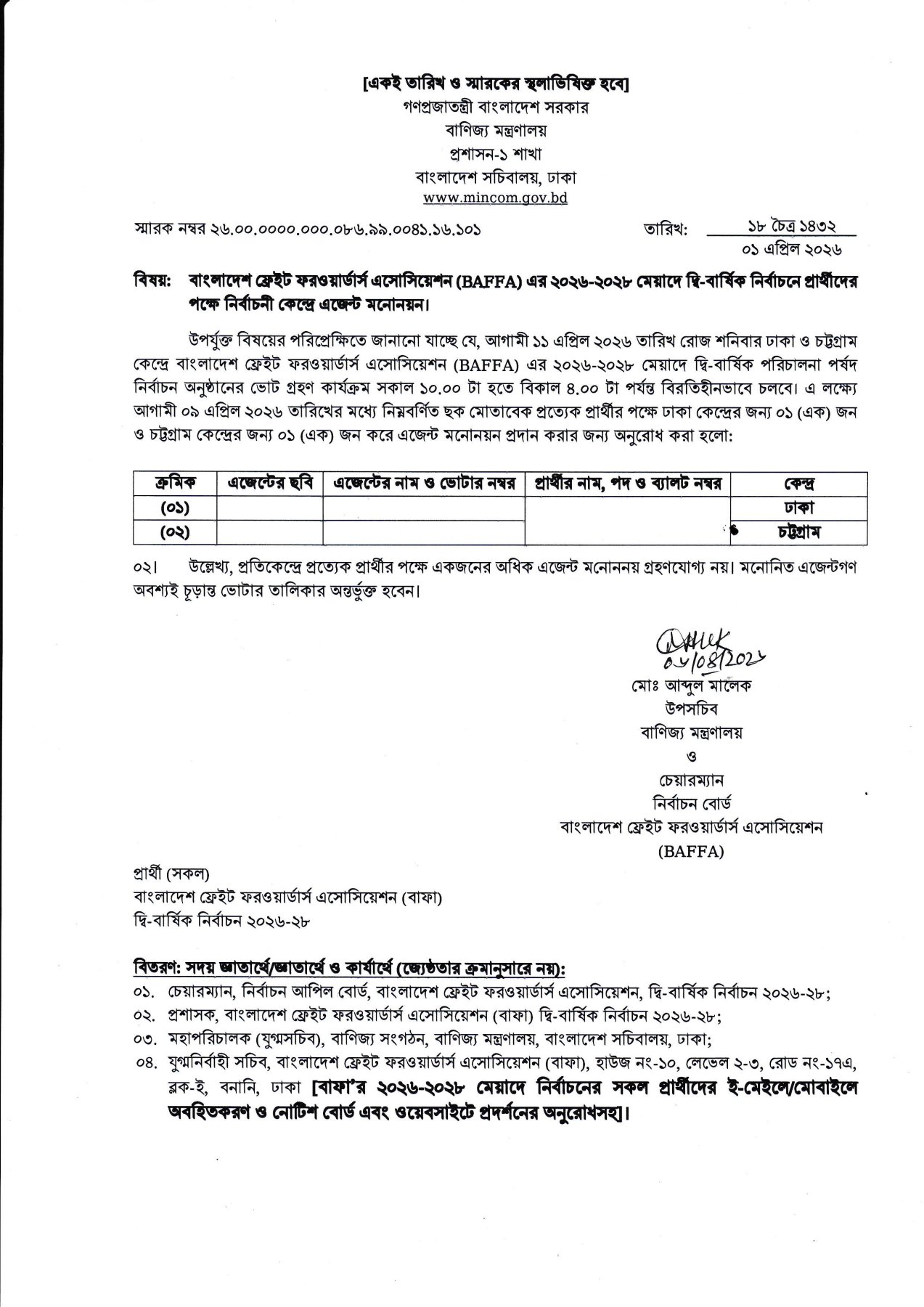 এজেন্ট নিয়োগ সংক্রান্ত (বাফা নির্বাচন ২০২৬-২০২৮)